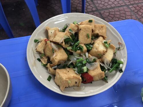 ハノイ駅の近くのビアホイ発見。 揚げ豆腐の玉ねぎ炒め美味しいよ。
