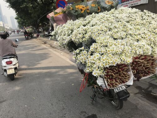 最近、白い花をたくさん売っています。 キク科のような感じの花ですが、自転車でたくさん売っています。大きい道では、このような花売りが、連なっているんですよ。 これだけ束になっていると、本当にきれいですよ。 一つ一つは、すでに花束になっていて、そ…