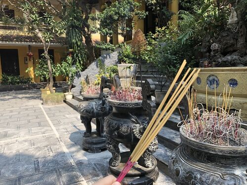 ホアロー収容所へ行って、ぞっとしましたので、その後にお寺へお払いに行きました。 ちゃんと線香も購入して、本気のお参りです。 以前も来た事があるお寺です。1日や15日には、お寺の前の店も増えにぎわいますが、この日は静かなものです。 黄色でかわいい…