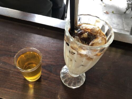 旧市街散策して、一休みするのにカフェは便利です。そして、全く探すのに困らないくらいたくさんカフェがあります。 今回は、こちらのカフェ。La Cafe。 外を眺めながらコーヒーを飲める店のスタイルは、ハノイでは、とても多いです。 ヨーグルトコーヒーを…