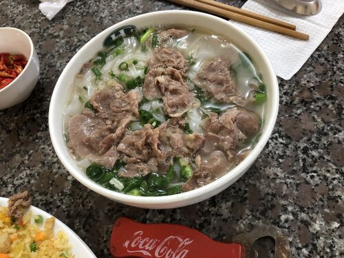 ハドン地区で、昼ごはんをどこかで食べようと思い、適当に店を探します。 ここは、フォーもあるしチャーハンもありますねえ。ここにしました。 なんと!自動チャーハン炒め機ですよ。 こんなの初めてみました。 あとから、ネギなどパラパラと投入しています…