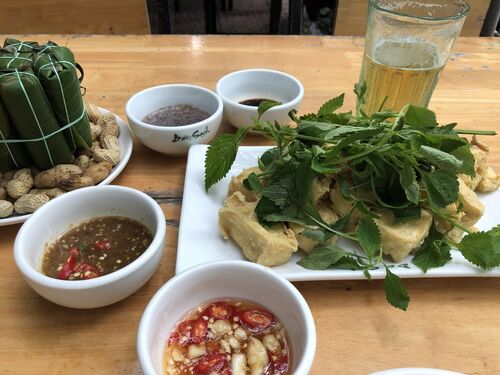 週末の楽しみはビアホイです。 ビンビールもいいんですが、ビアホイのごくごくいける感じがいいんですよう。 今日の料理は揚げ豆腐。 たれが3種類ついてきました。 ベトナムでよくある醤油。 エビを発酵させたマムトム。 正体はよくわかりませんが、魚系の味…